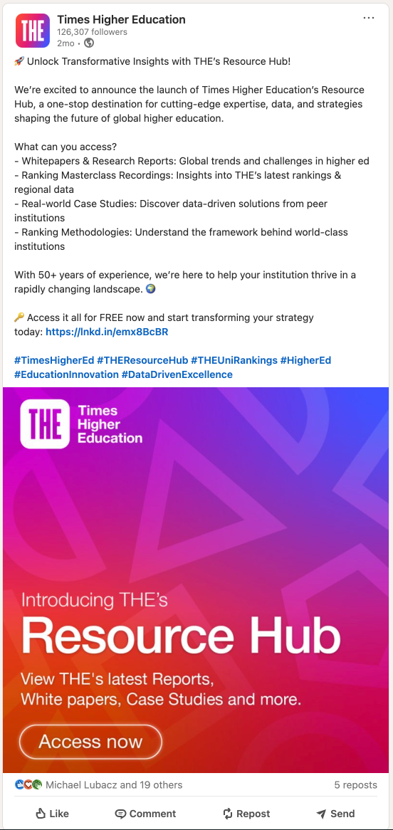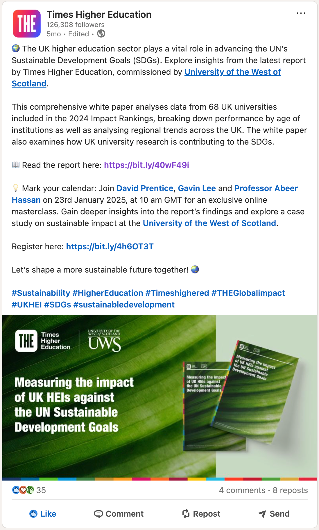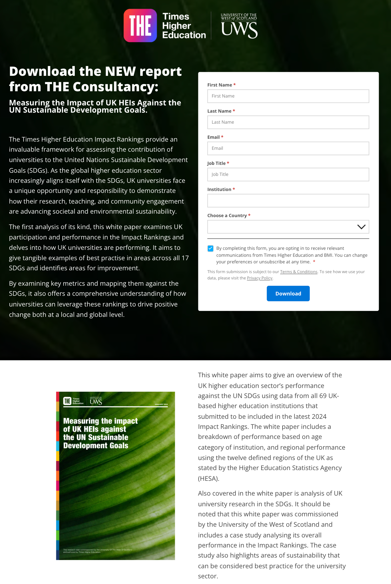 3 email marketing campaigns sent to THE's UK sustainable research academia & uni leaders for report launch & a masterclass. LinkedIn posts also published on THE page.