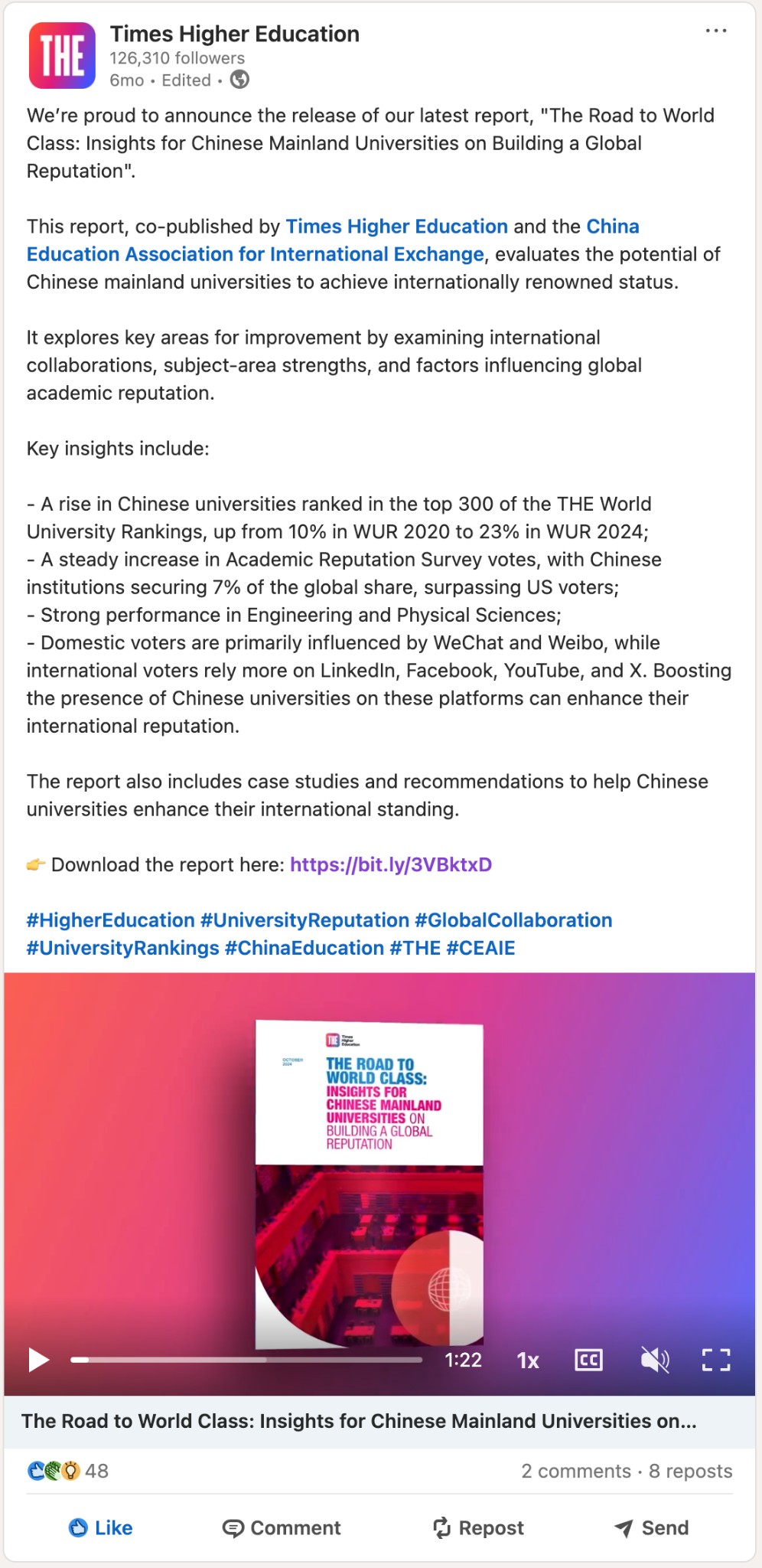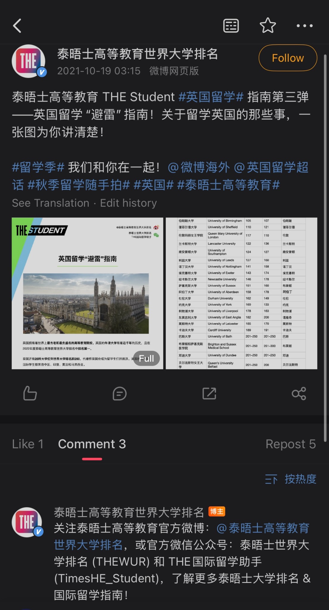 While I worked at Times Higher Education, I have been co-managing THE's Weibo account with my colleagues in Singapore.