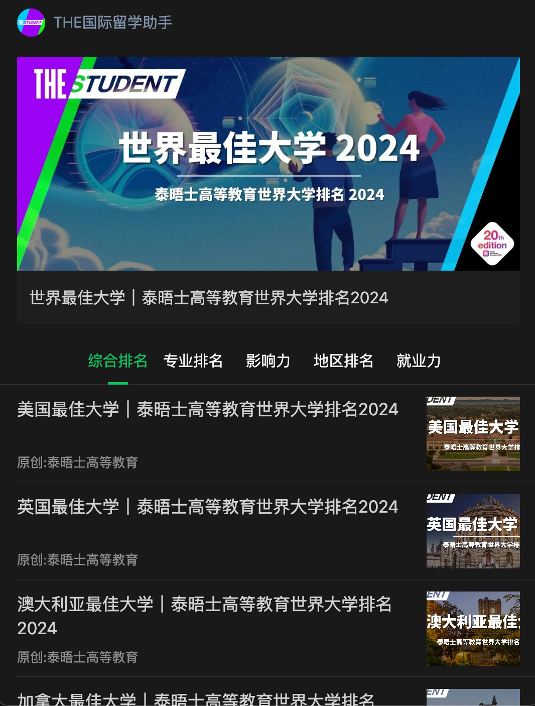 Since mid 2021, 378 articles were created and posted, based on THE's rankings & student articles. While THE's student articles were written in English from a western point of view, I did extra research and localisation & translation works to build Chinese articles.